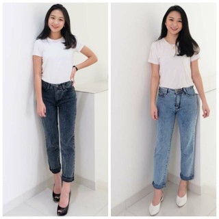 Celana boyfriends jeans wanita baggy snow.